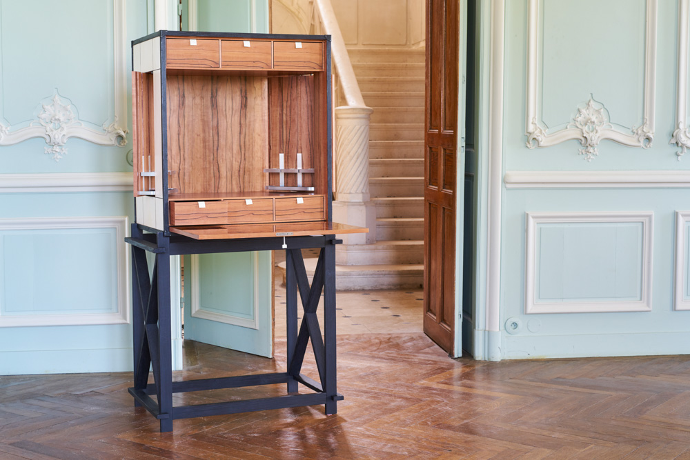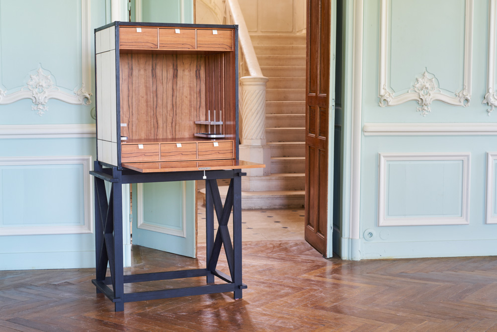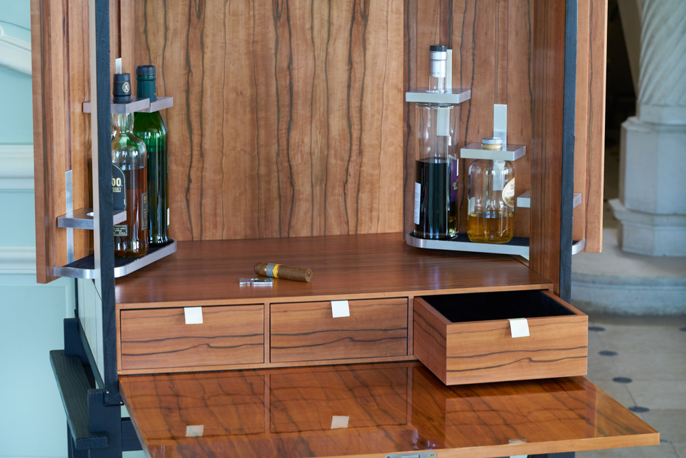 The humidor, Le Gentleman épicurien, in Macassar ebony and Spanish cedar is hidden inside the cabinet, thanks to an ingenious secret mechanism.