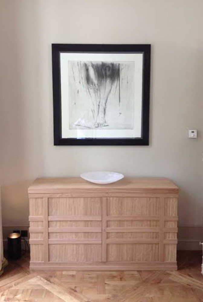 Réalisation d’un buffet en chêne arraché pour un appartement parisien en collaboration avec l’architecte d’intérieur Franz Potisek.
