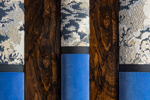 Réalisation sur-mesure d’une exceptionnelle tête de lit en placage de ziricote pour l’atelier de design GLD Conception.